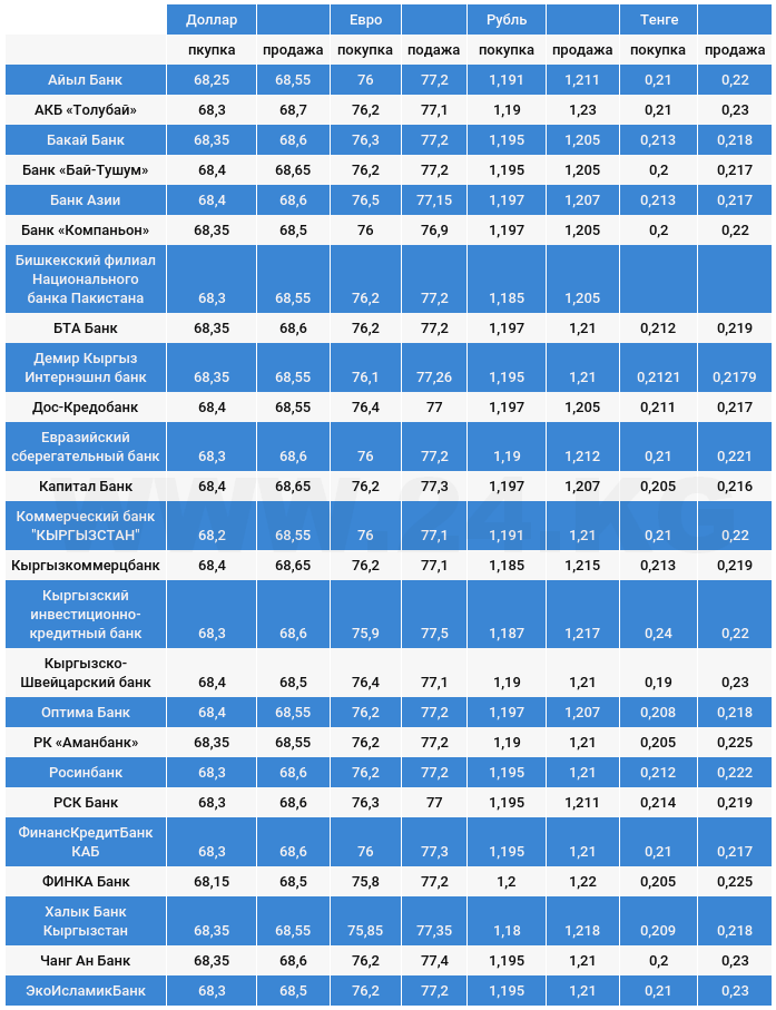 Курс доллара в коммерческих банках Кыргызстана на 13 июня
