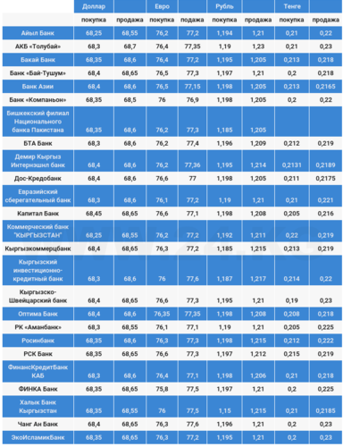 Курс доллара в коммерческих банках Кыргызстана на 14 июня