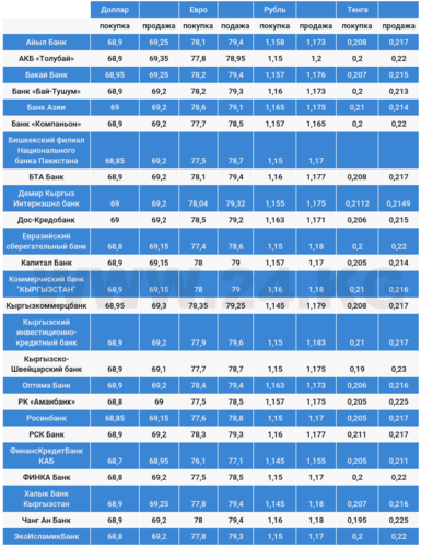 Курс доллара в коммерческих банках Кыргызстана на 29 июня
