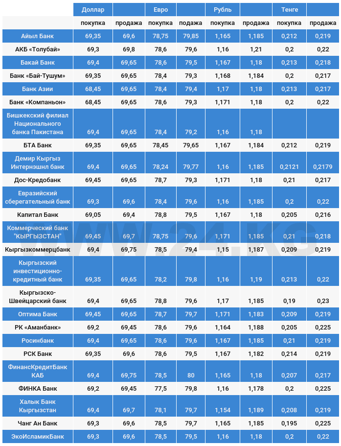 Курс доллара в коммерческих банках Кыргызстана на 4 июля