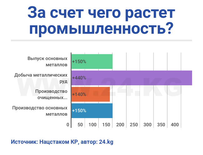 Заместитель председателя Национального статистического комитета Азамат Оросбаев отметил, что рост ВВП стал возможным за счет увеличения объемов промышленного производства, строительства и услуг. В первом полугодии наблюдалось также увеличение производства пищевых продуктов (на 10,3 процента). Это связано с ростом объемов переработки консервирования фруктов и овощей в 1,8 раза, производства муки — на 30,4 процента и молочных продуктов — на 20,4 процента. Кроме того, на 30,4 процента увеличился выпуск мужской и женской одежды.