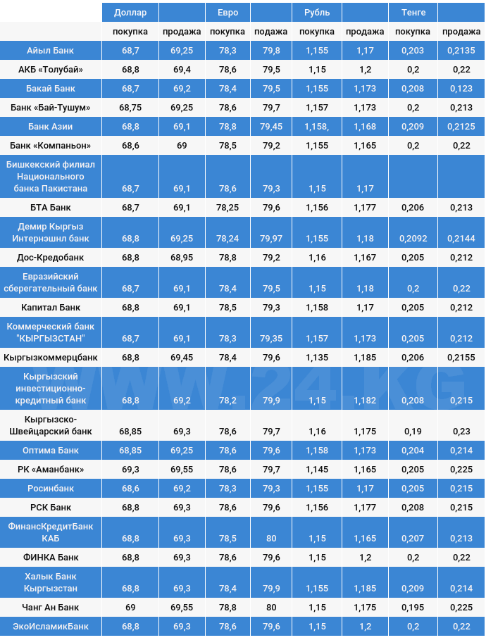 Курс доллара в коммерческих банках Кыргызстана на 17 июля