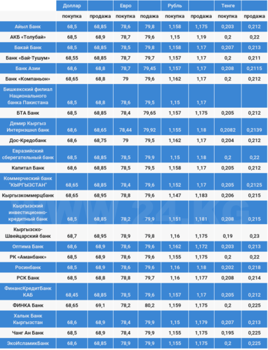 Курс доллара в коммерческих банках Кыргызстана на 20 июля