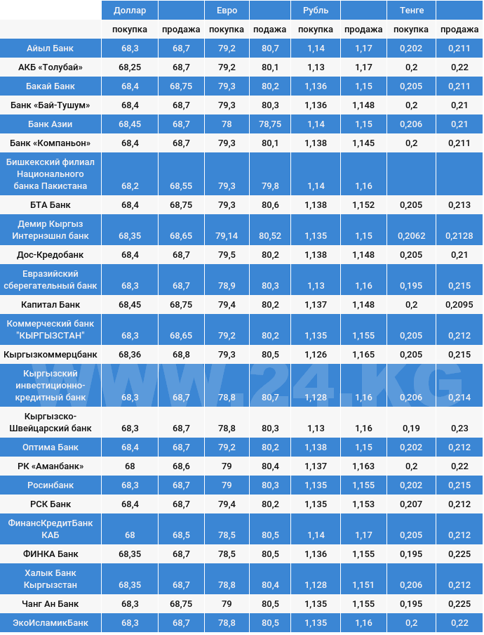 Курс доллара в коммерческих банках Кыргызстана на 25 июля