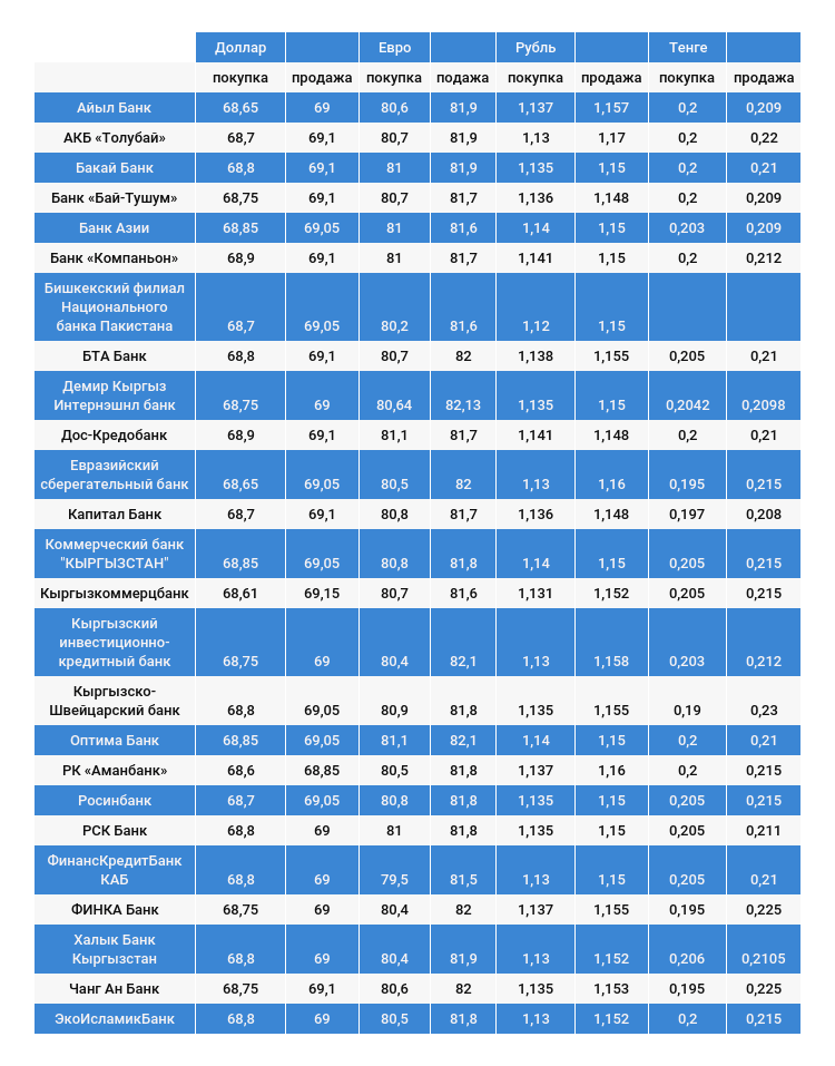Курс доллара в коммерческих банках Кыргызстана на 2 августа