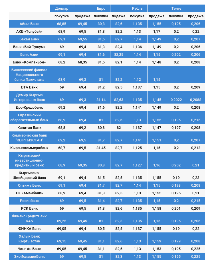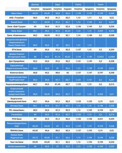 Курс доллара в коммерческих банках Кыргызстана на 3 августа