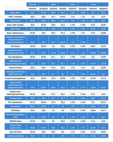 Курс доллара в коммерческих банках Кыргызстана на 9 августа