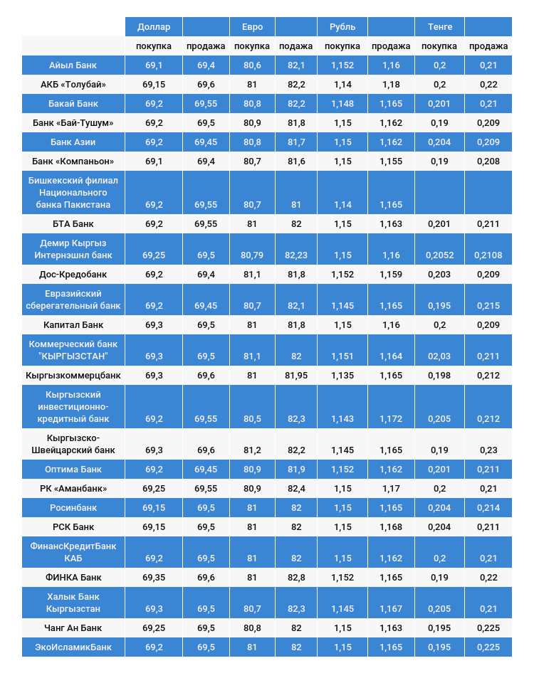 Курс доллара в коммерческих банках Кыргызстана на 10 августа