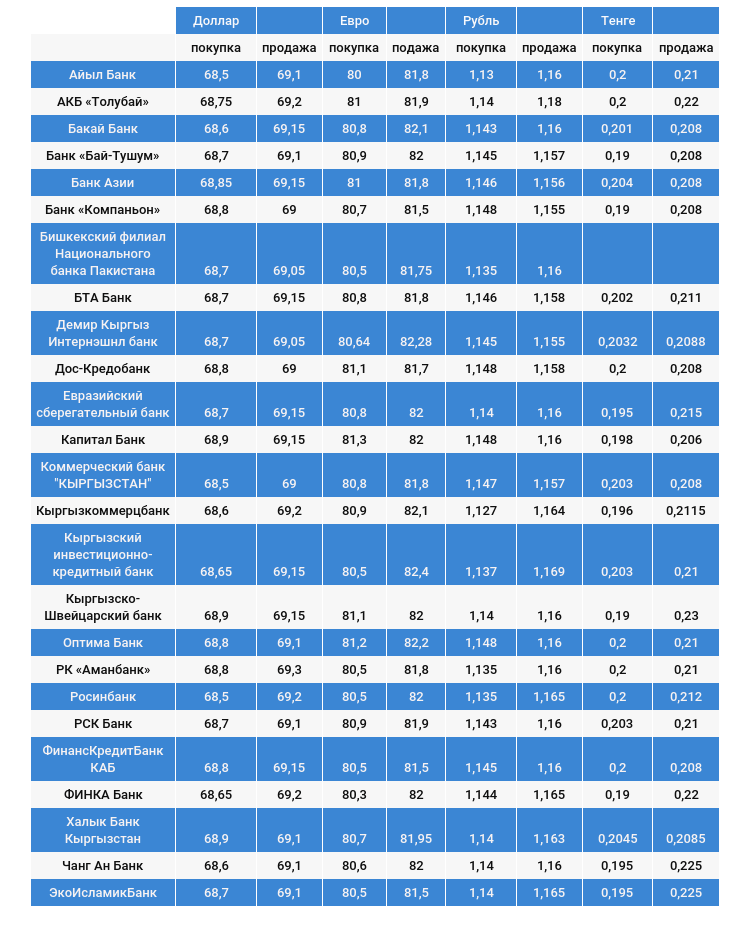 Курс доллара в коммерческих банках Кыргызстана на 14 августа