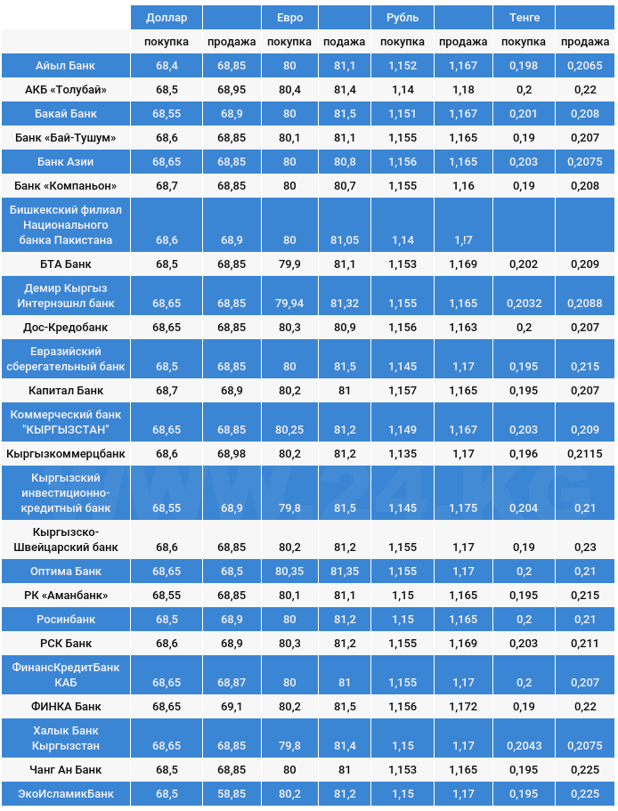 Курс доллара в коммерческих банках Кыргызстана на 18 августа