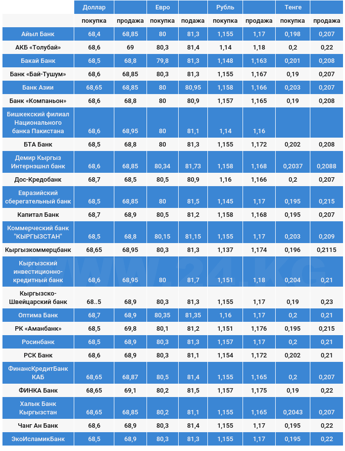 Курс доллара в коммерческих банках Кыргызстана на 21 августа