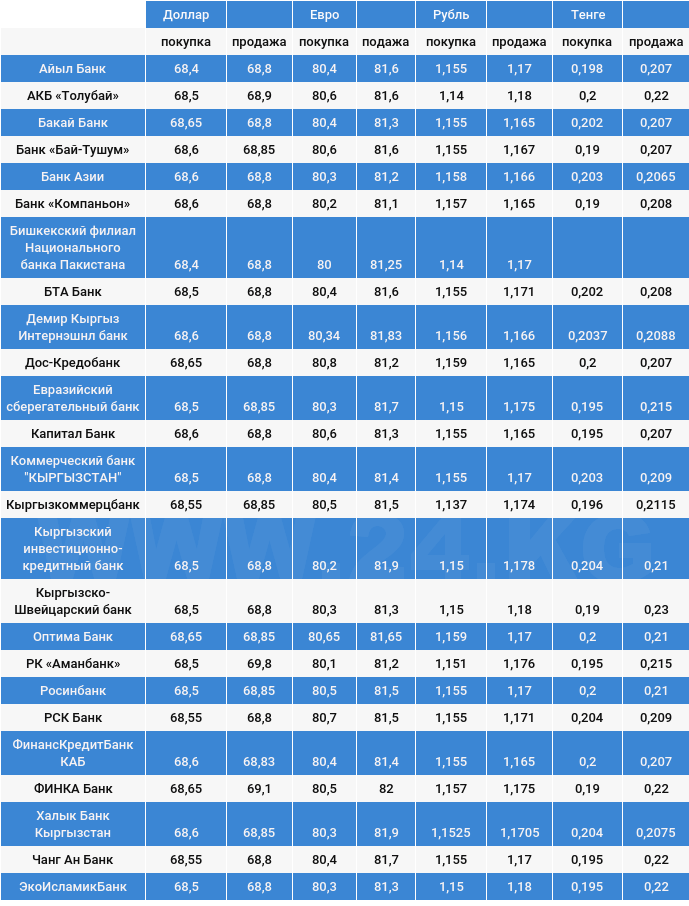 Курс доллара в коммерческих банках Кыргызстана на 22 августа