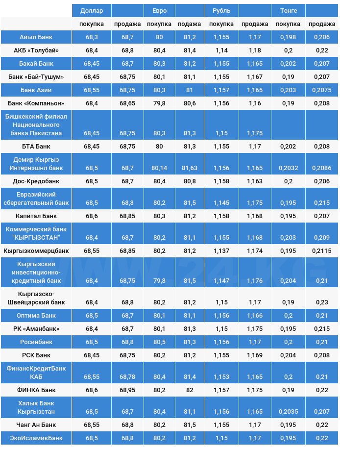 Курс доллара в коммерческих банках Кыргызстана на 23 августа