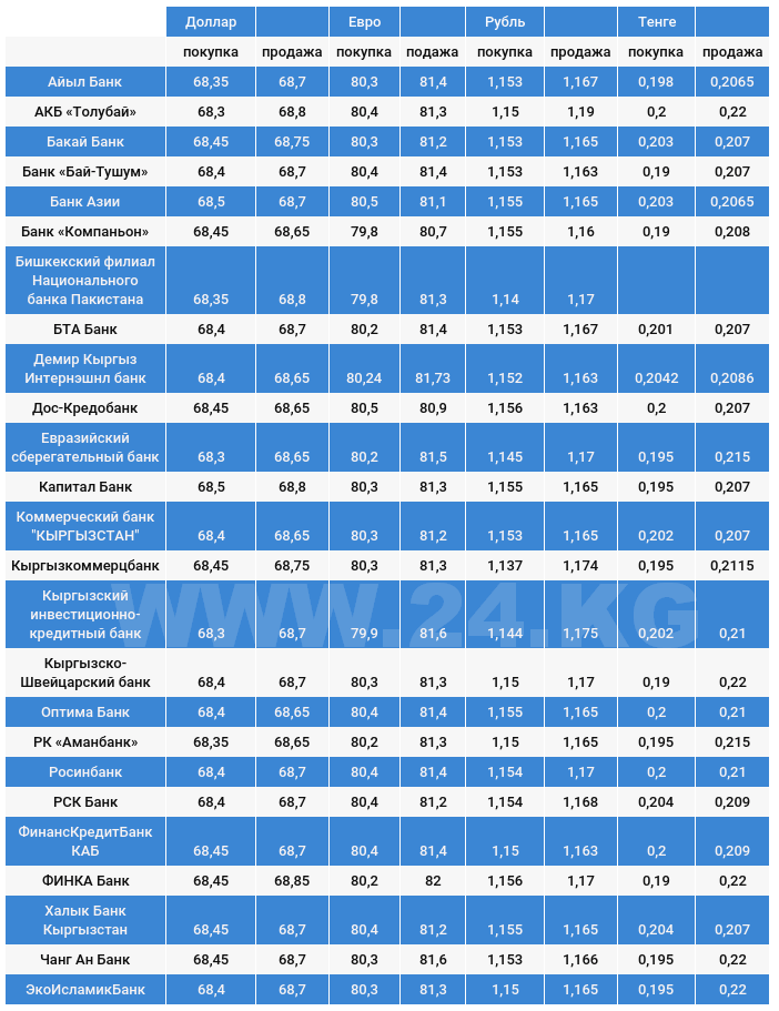 Курс доллара в коммерческих банках Кыргызстана на 25 августа