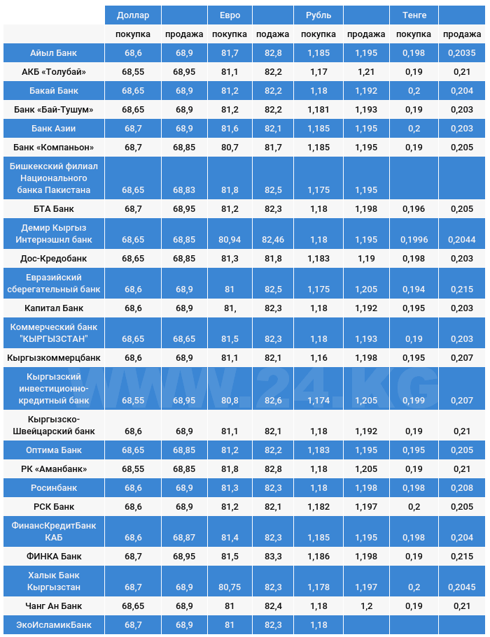 Курс доллара в коммерческих банках Кыргызстана на 14 сентября