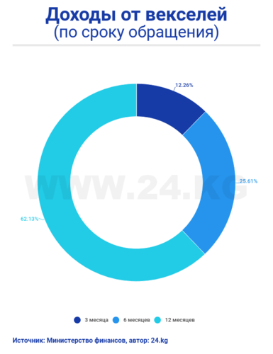 Как отмечается, самыми доходными оказались государственные казначейские облигации (ГКО). От их продажи выручили 6 миллиардов 92,899 миллиона сомов. В том числе размещение двухлетних ГКО принесло бюджету 2 миллиарда 209,97 миллиона, трехлетних — 1 миллиард 490,08 миллиона, пятилетних — 1 миллиард 447,83 миллиона, семилетних — 1 миллиард 781,11 миллиона сомов.