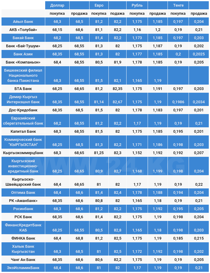 Курс доллара в коммерческих банках Кыргызстана на 22 сентября