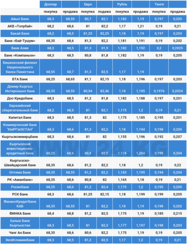 Курс доллара в коммерческих банках Кыргызстана на 25 сентября