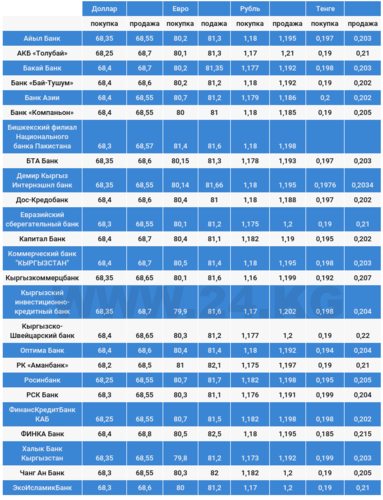 Курс доллара в коммерческих банках Кыргызстана на 27 сентября