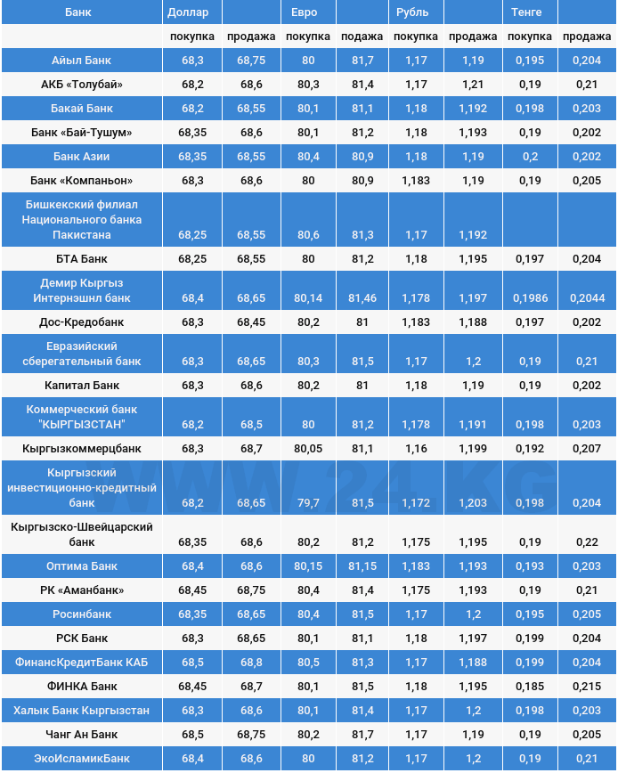 Курс доллара в коммерческих банках Кыргызстана на 2 октября