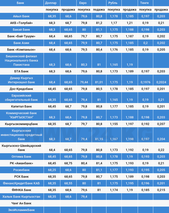 Курс доллара в коммерческих банках Кыргызстана на 3 октября