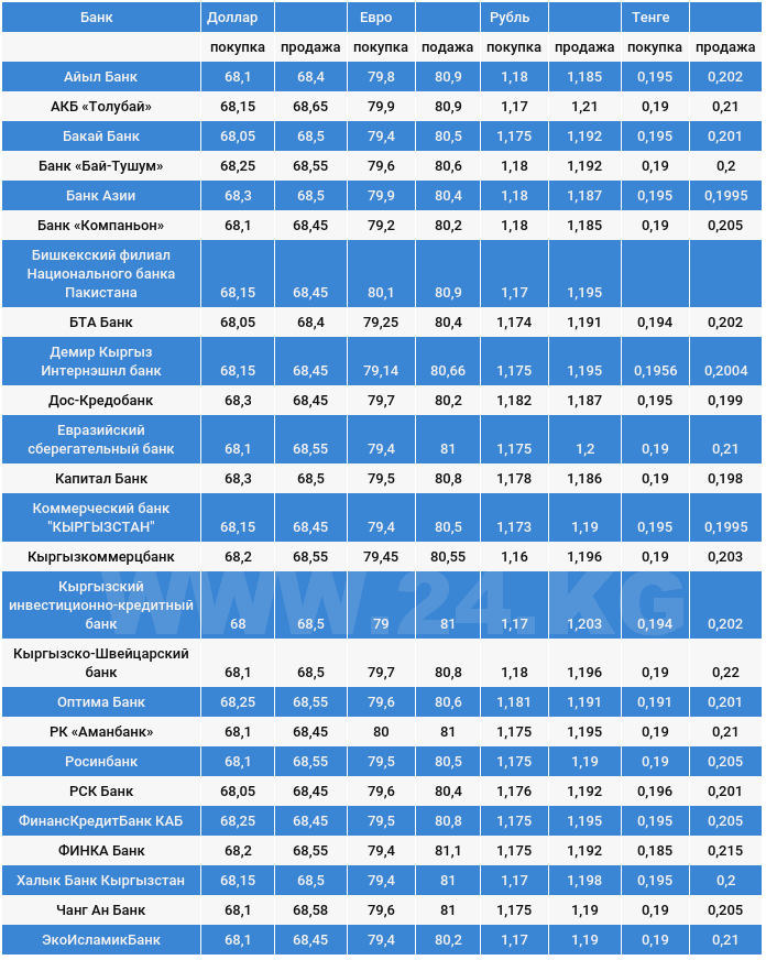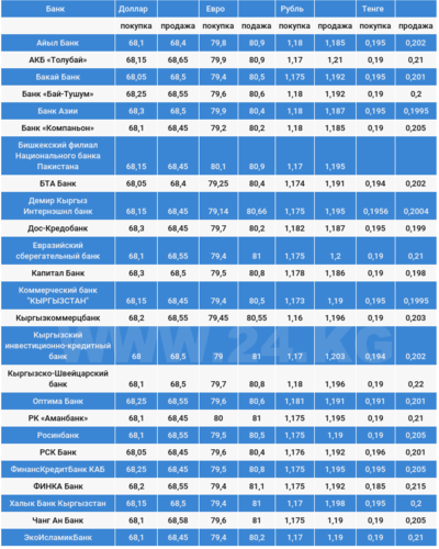 Курс доллара в коммерческих банках Кыргызстана на 6 октября