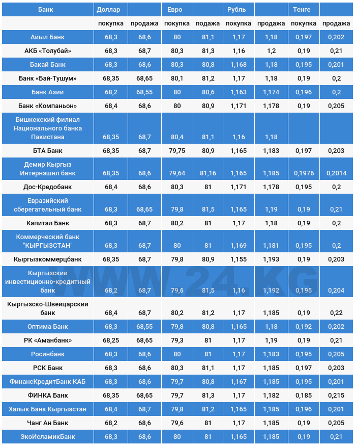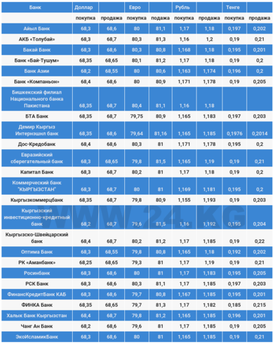 Курс доллара в коммерческих банках Кыргызстана на 10 октября