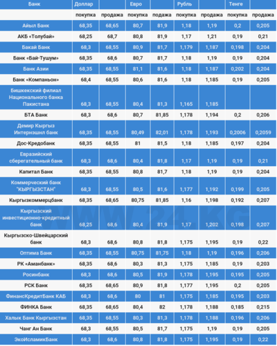 Курс доллара в коммерческих банках Кыргызстана на 12 октября