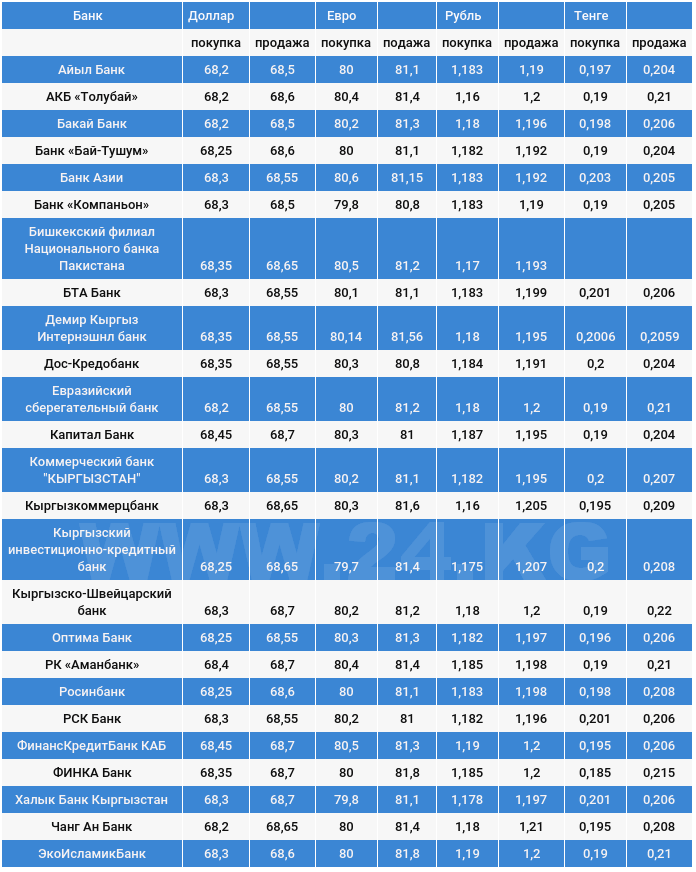 Курс доллара в коммерческих банках Кыргызстана на 23 октября
