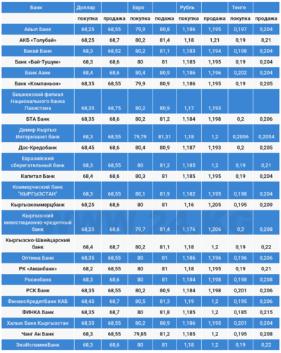 Курс доллара в коммерческих банках Кыргызстана на 24 октября