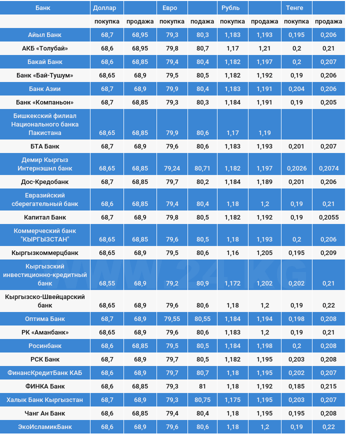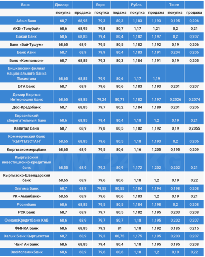 Курс доллара в коммерческих банках Кыргызстана на 31 октября