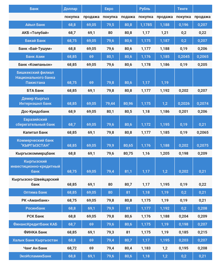 Курс доллара в коммерческих банках Кыргызстана на 1 ноября