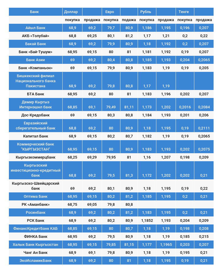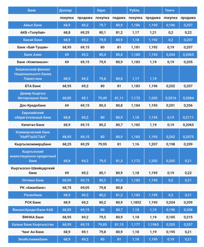 Курс доллара в коммерческих банках Кыргызстана на 2 ноября
