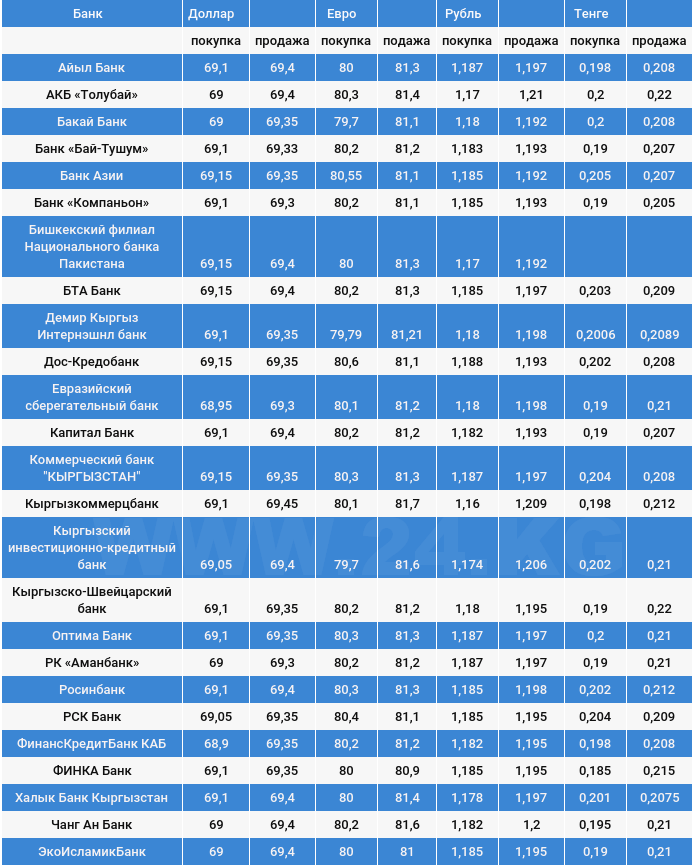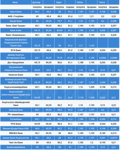Курс доллара в коммерческих банках Кыргызстана на 3 ноября