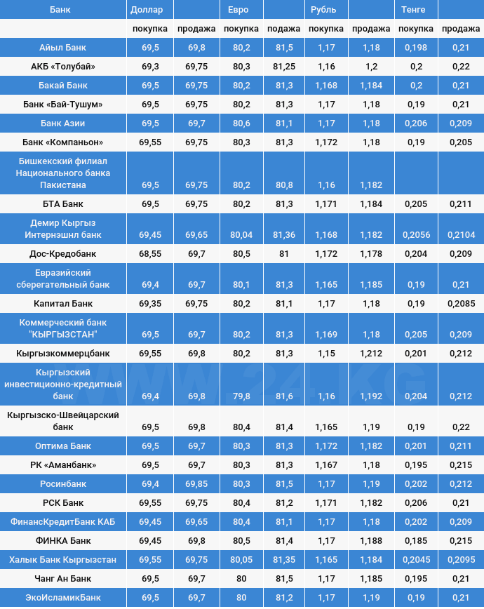 Курсы указаны для наличного обмена валют. Данные получены с сайтов коммерческих банков. В случае возникновения вопросов по представленным данным следует обращаться непосредственно в коммерческие банки.