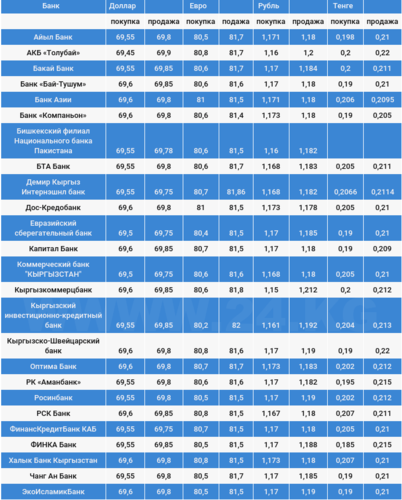 Курс доллара в коммерческих банках Кыргызстана на 10 ноября