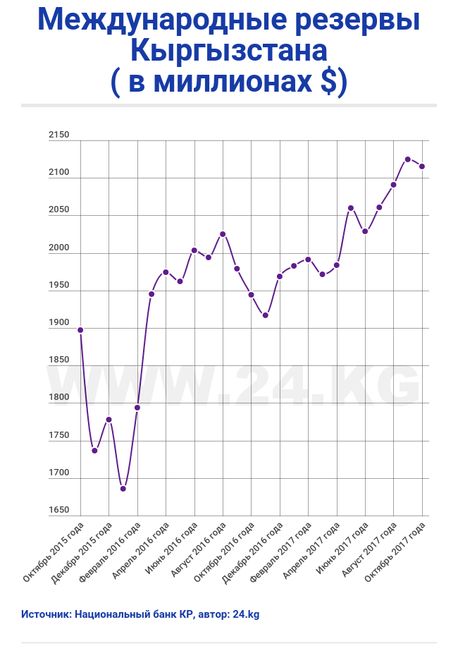 При этом с начала года резервы выросли на $146,4 миллиона. Стоит отметить, что уменьшение объема валовых международных резервов не связано с интервенциями НБ КР. В октябре Национальный банк на валютный рынок не выходил.