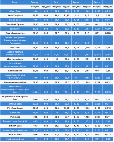 Курс доллара в коммерческих банках Кыргызстана на 15 ноября