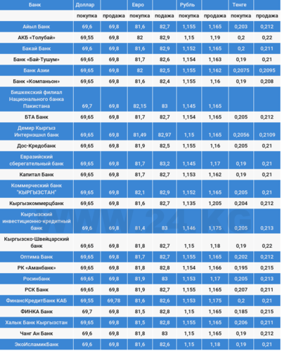 Курс доллара в коммерческих банках Кыргызстана на 16 ноября