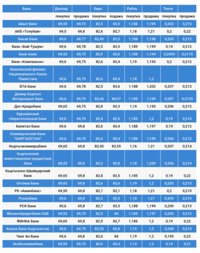 Курсы указаны для наличного обмена валют. Данные получены с сайтов коммерческих банков. В случае возникновения вопросов по представленным данным следует обращаться непосредственно в коммерческие банки.