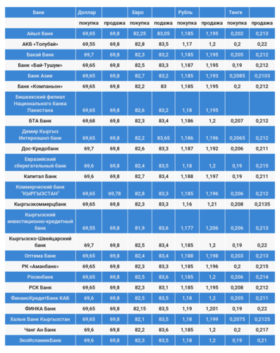 Курс доллара в коммерческих банках Кыргызстана на 30 ноября