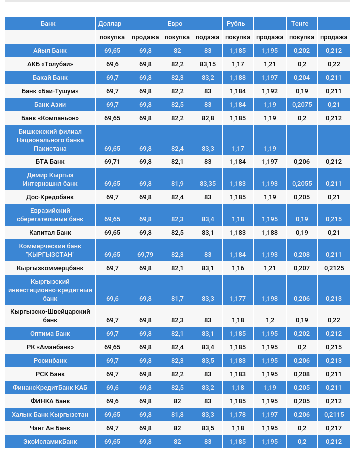 Курс доллара в коммерческих банках Кыргызстана на 6 декабря