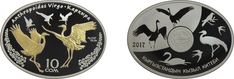 Коллекционная монета «Журавль-красавка» выпускается для популяризации и сохранения редких видов фауны Кыргызстана, занесенных в Красную книгу.