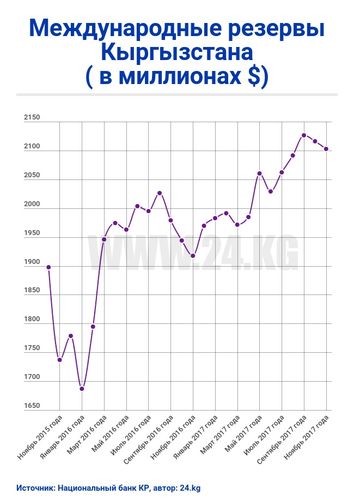 В ноябре Национальный банк впервые с июля 2017 года неоднократно выходил на валютный рынок с интервенциями для сдерживания роста курса доллара. Всего в ноябре НБ КР продал $42,7 миллиона.