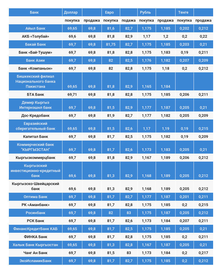 Курс доллара в коммерческих банках Кыргызстана на 8 декабря