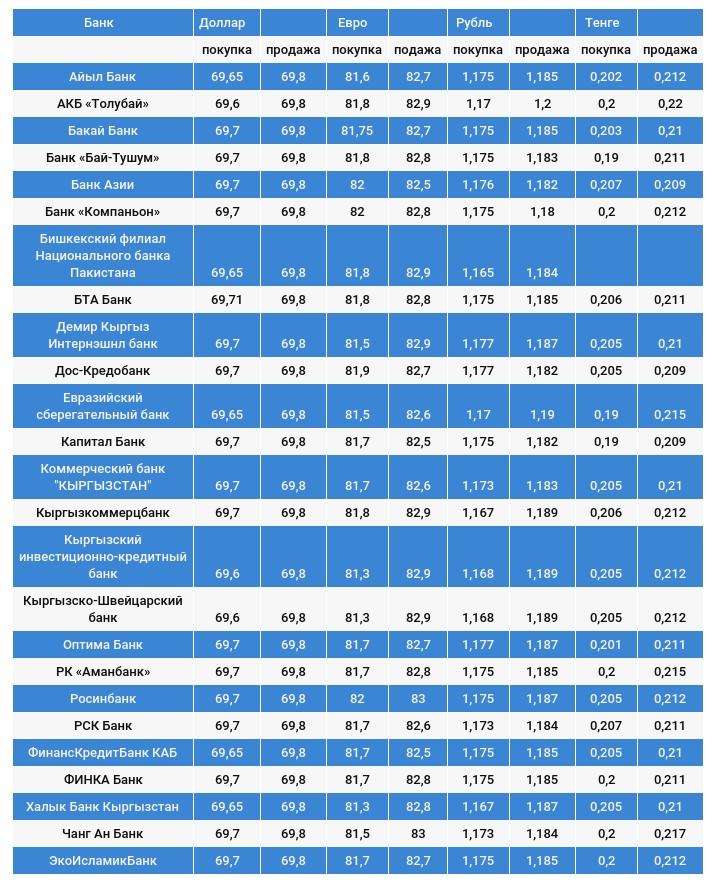 Курс доллара в коммерческих банках Кыргызстана на 11 декабря