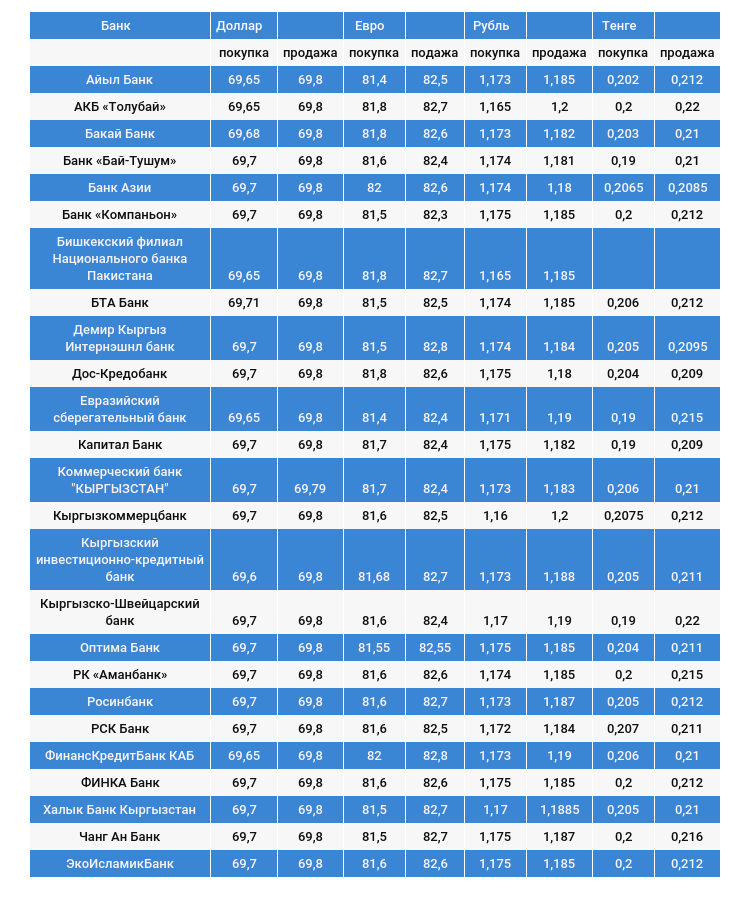 Курс доллара в коммерческих банках Кыргызстана на 13 декабря