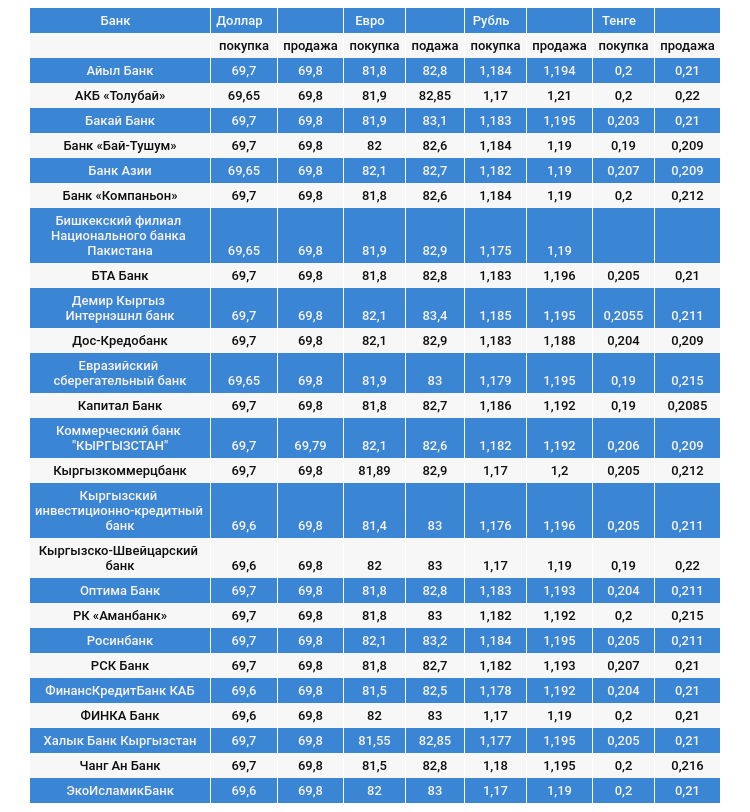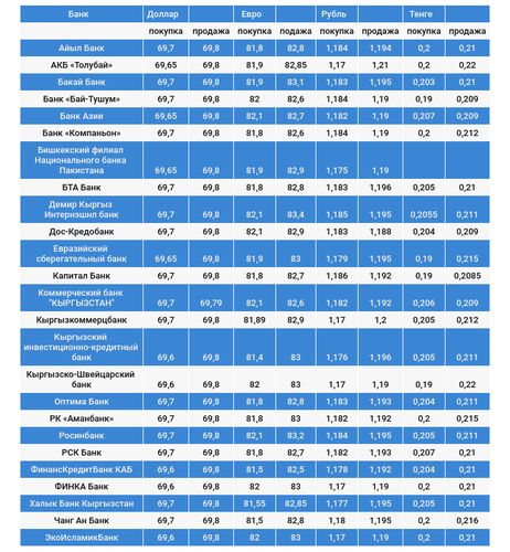 Курс доллара в коммерческих банках Кыргызстана на 14 декабря