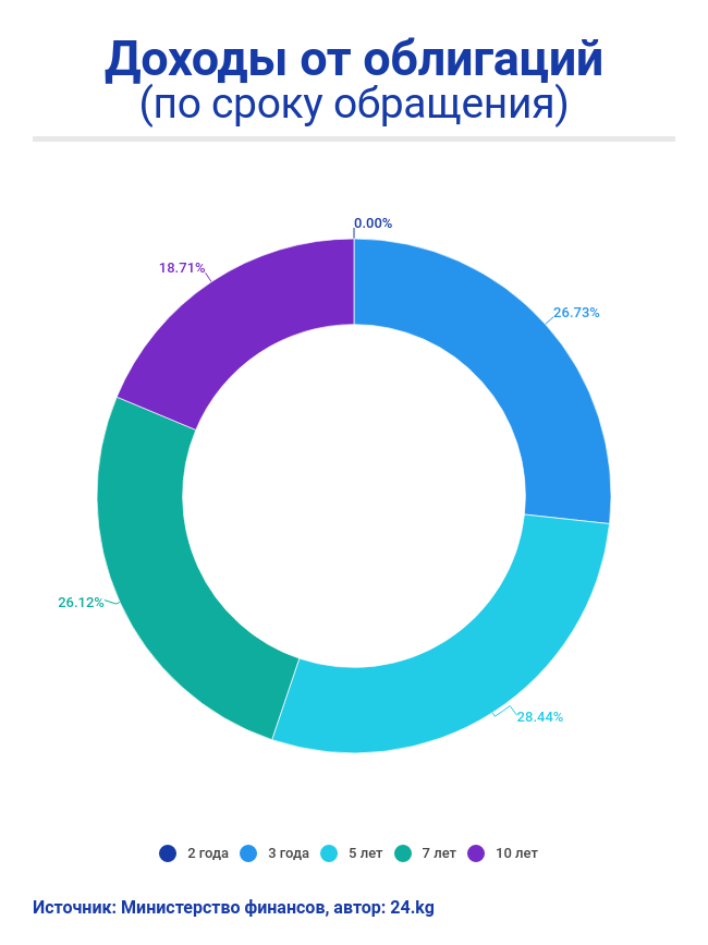 По его данным, самыми доходными оказались государственные казначейские облигации (ГКО). Благодаря их размещению бюджет пополнился на 10 миллиардов 296,4 миллиона сомов.