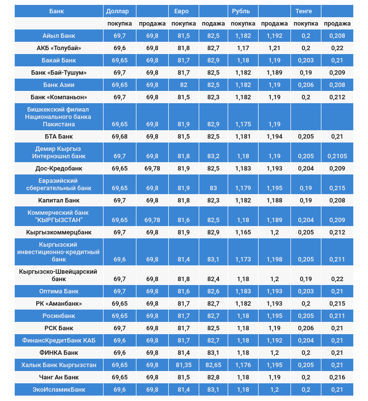 Курс доллара в коммерческих банках Кыргызстана на 18 декабря